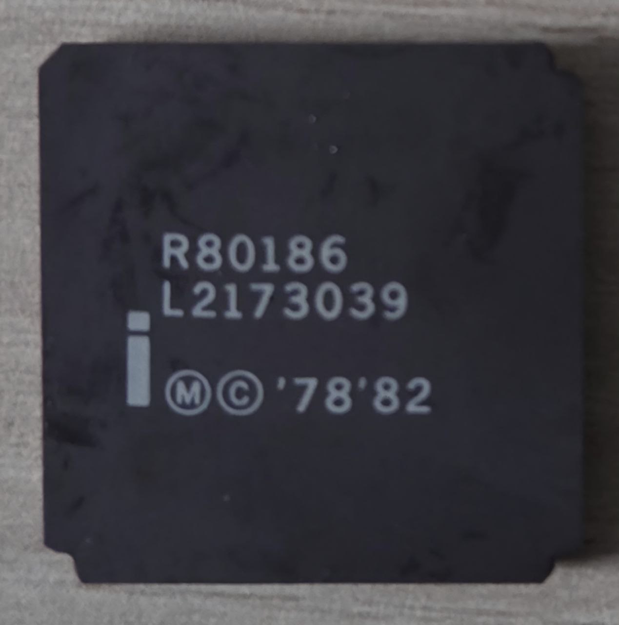 | 1982 | Intel | Intel 80186 | iAPX 186 | 68 pin LLC | 10 | unknown | Ceramic with white print. |